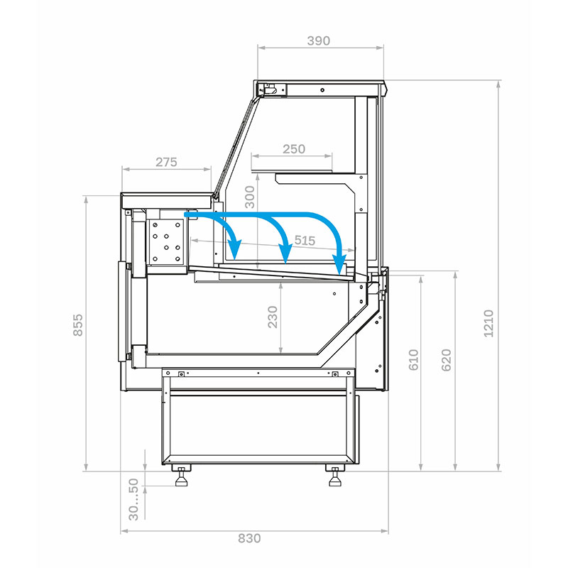 • внутри охлаждаемая базовая поверхность и неохлаждаемая демонстрационная полка;