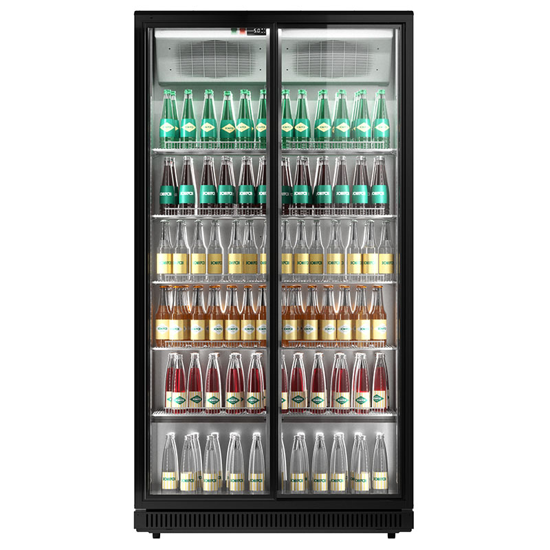 Холодильный шкаф POLAIR V1100Sd высотой 223 см, шириной 117 см и глубиной 67 см разработан для хранения и продажи напитков.