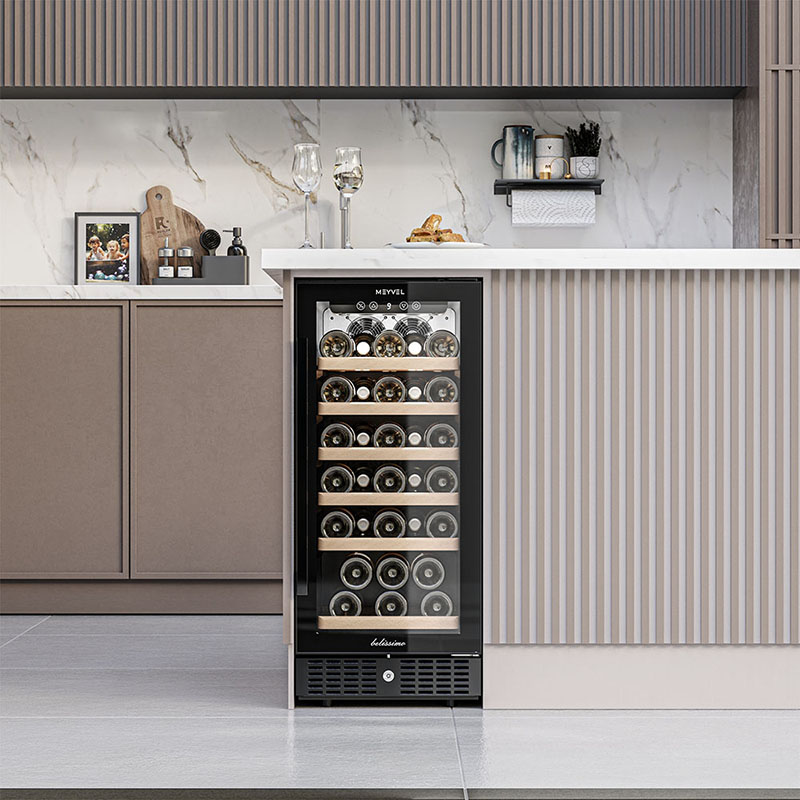 Эти шкафы не просто красивы и обеспечивают винам прекрасные условия хранения, но и объединяются в модули, позволяя создать особенно вместительную, многозональную и стильную винотеку.
