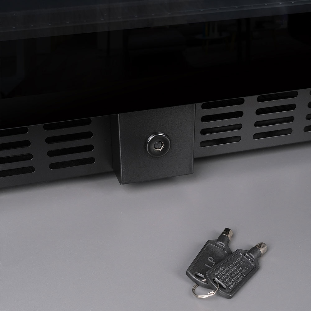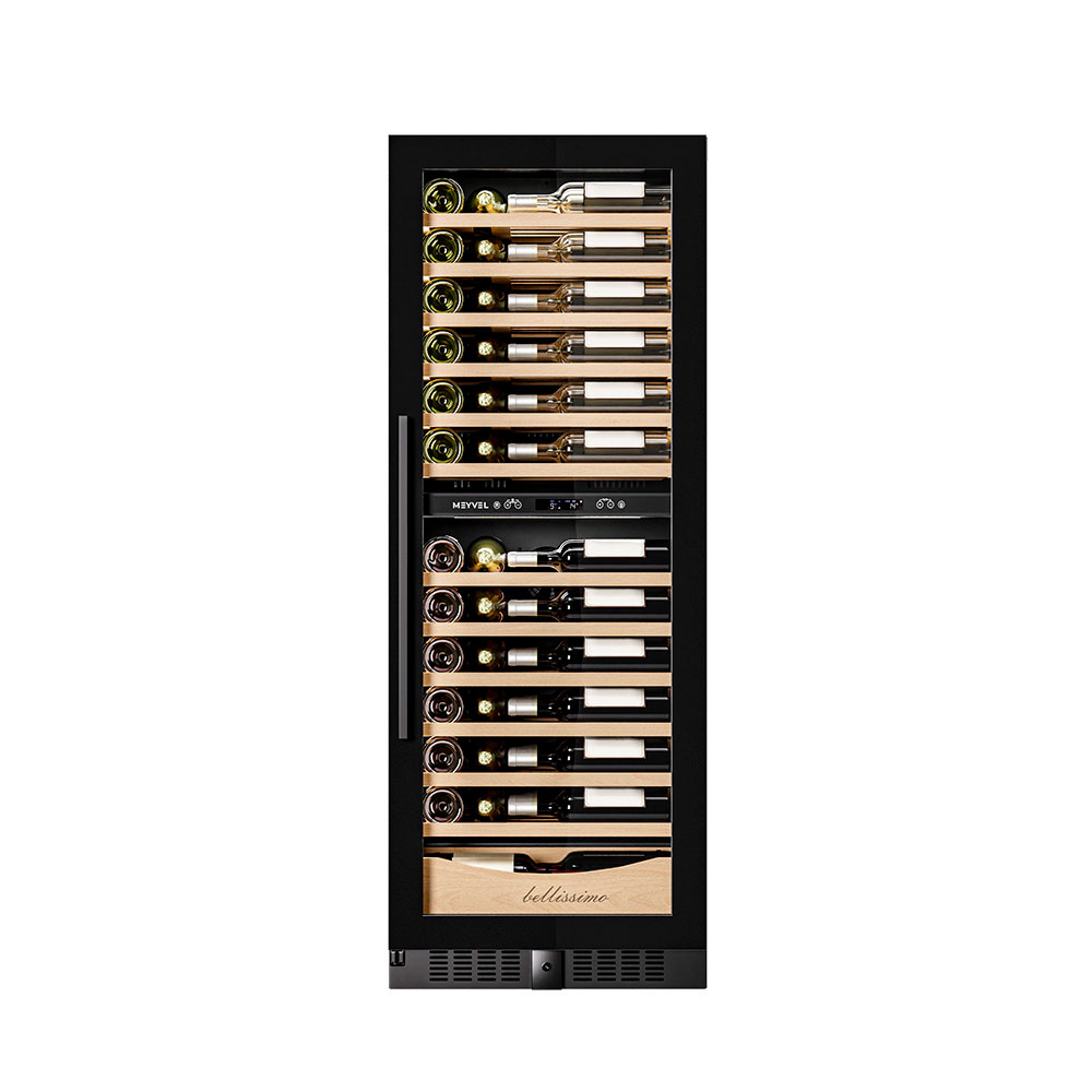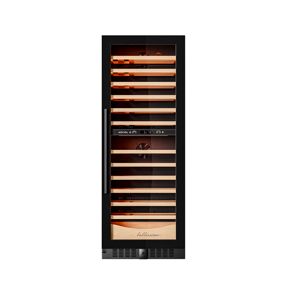 Винные шкафы представлены как с черной стеклянной дверцей, так и с застекленной дверью, фасад который вы можете заказать под интерьер.